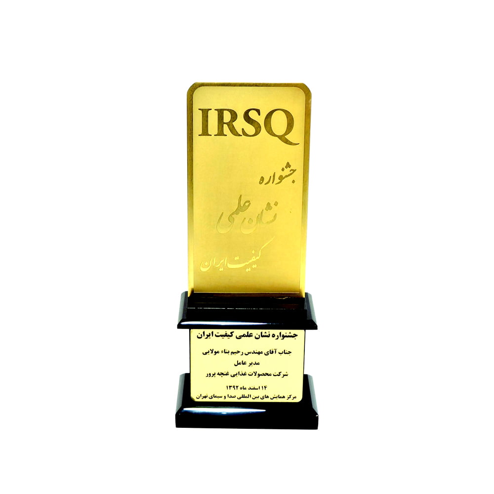 حصل على تمثال من مهرجان جائزة الجودة العلمية الإيرانية IRSQ في 92