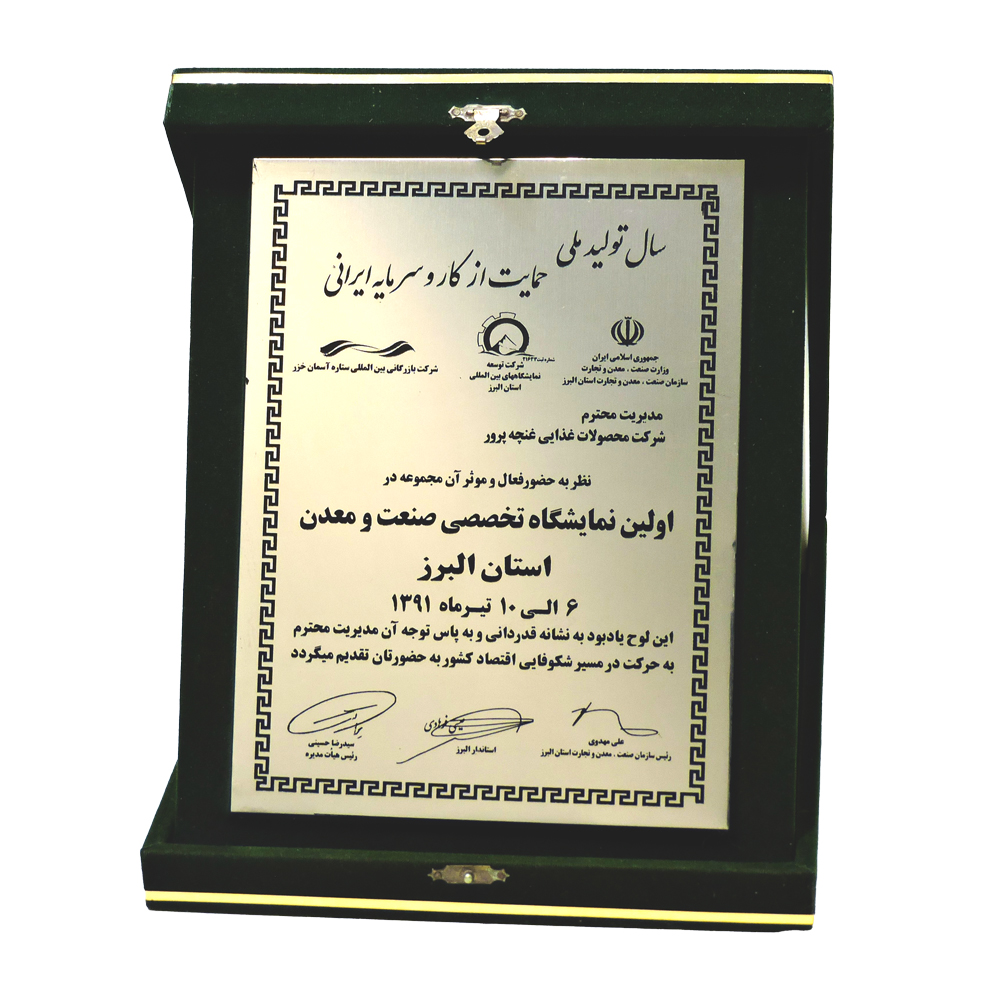 حصل على لوحة تقديرية في أول معرض متخصص في صناعة التعدين في محافظة البرز في 91